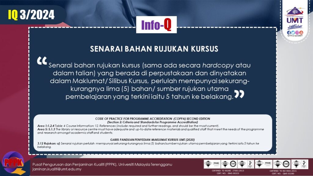 IQ 3/2024: COURSE REFERENCE MATERIAL LIST