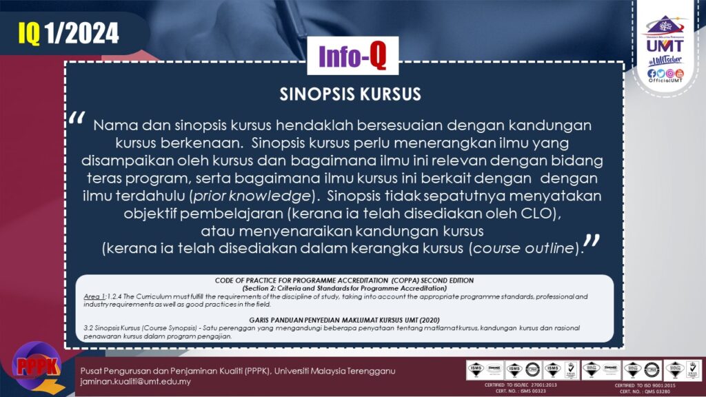 IQ 1/2024: COURSE SYNOPSIS