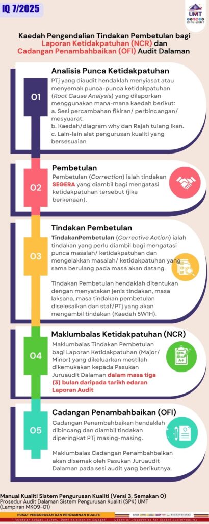 IQ 7/2025: Keadah Pengendalian Tindakan Pembetulan bagi Laporan Ketidakpatuhan (NCR) dan Cadangan Penambahbaikan (OFI) Audit Dalaman